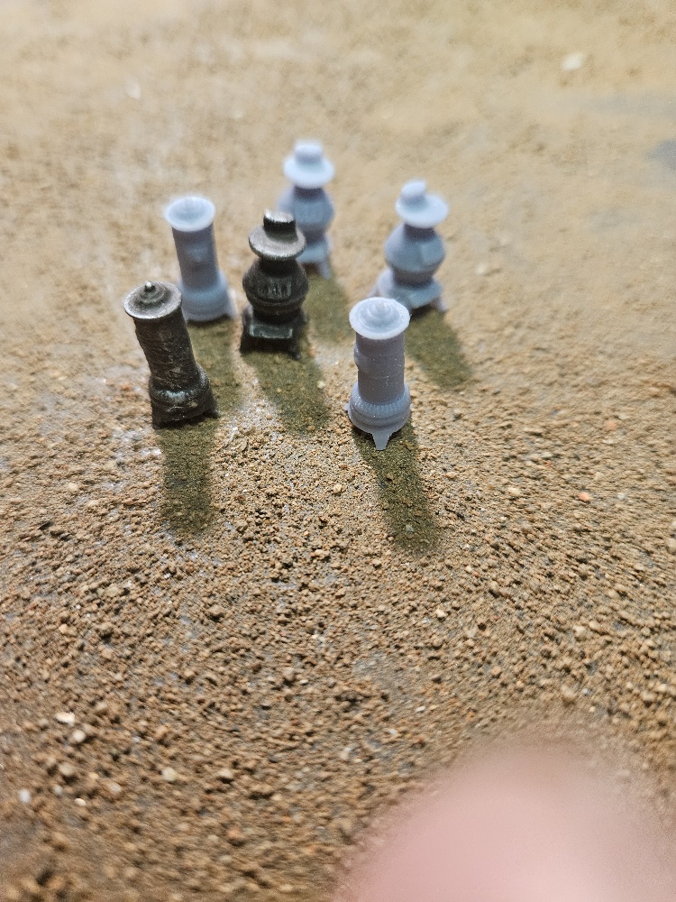 Here is two different wood or coal burning stoves a potbelly and a larger heating stove and are both 3D printed. You get 3 of each stove for a total of six stoves. The stoves come unpainted.