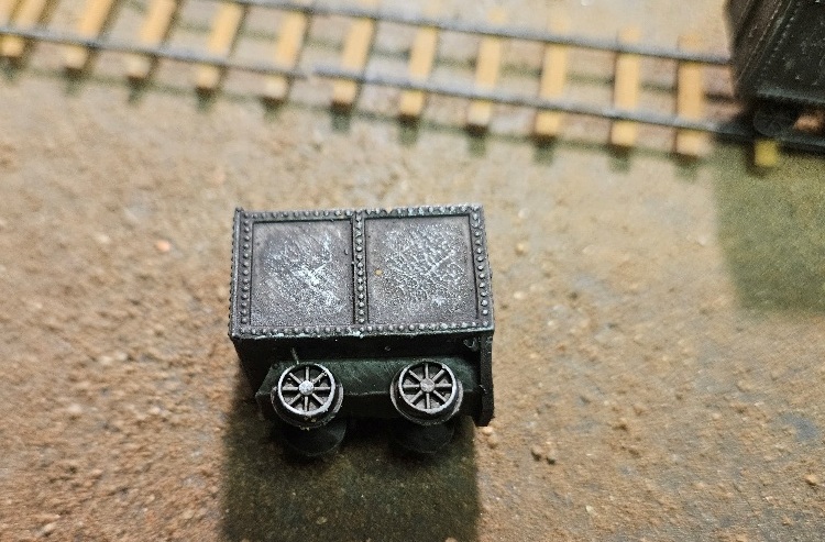 Here is the O scale mine cars 3d printed. It includes the two mine cars. 3d prints are unpainted.