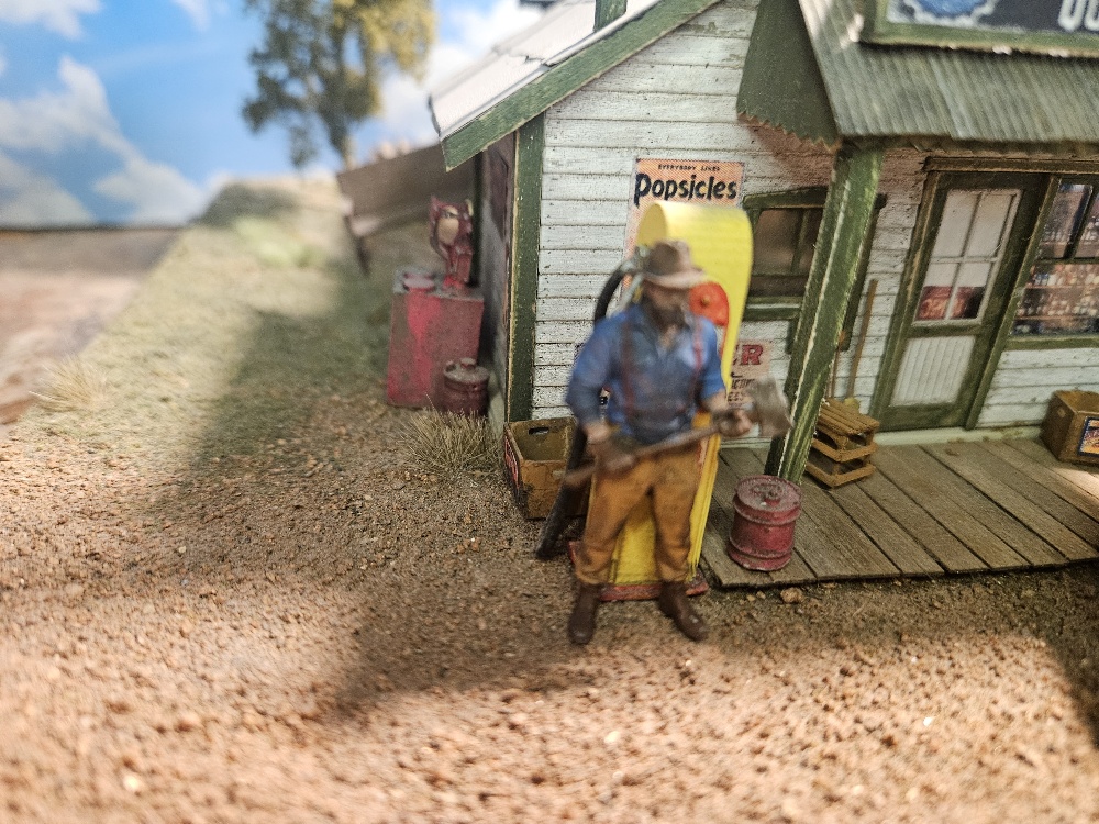 This is Justin. Another same pose different boots and a beard axe man ready for your logging crew. A 3D printed figure comes unpainted.