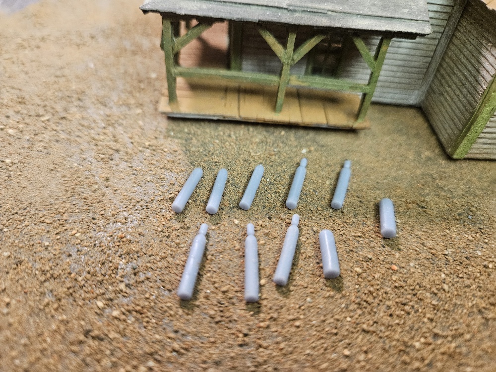 Here is a set of 3 different styles of oil drums, Wood barrels different sizes some open and closed and trash cans open and closed. You can see what the items look like painted. These are 3D printed and come unpainted.