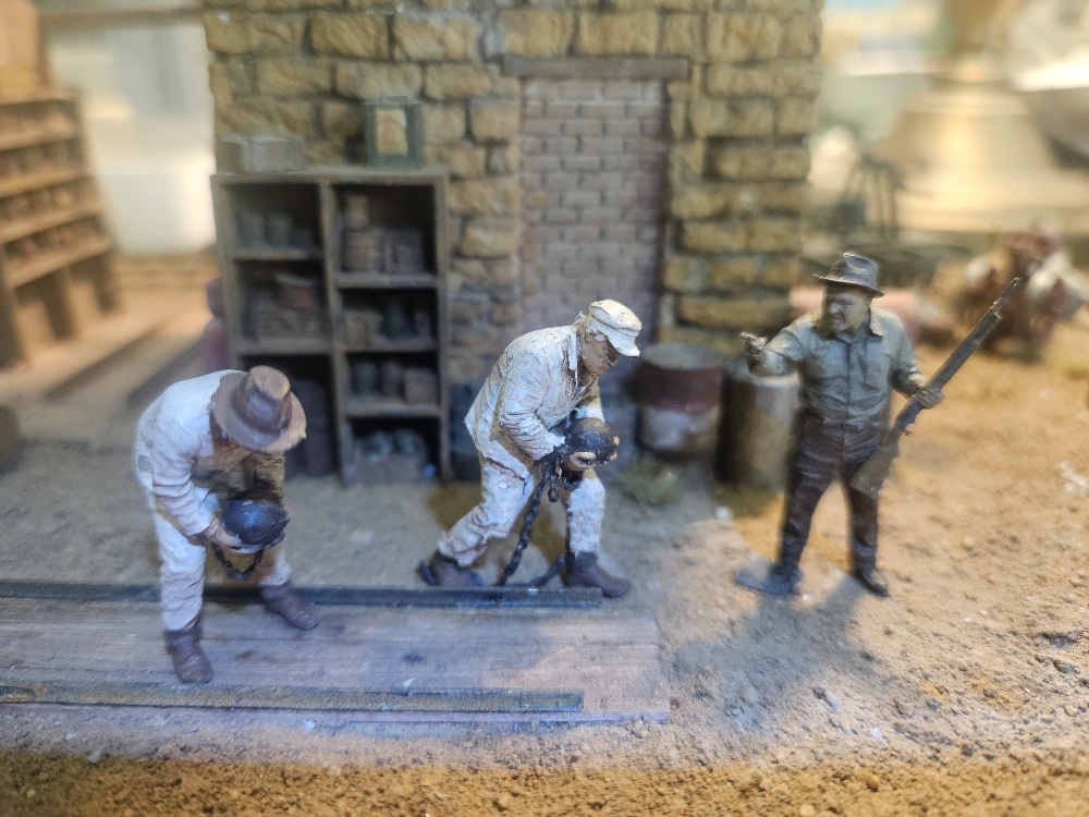 In addition to getting 3d printed parts which includes 3 figures. The kit has a set of castings to place around the building. The build has a small footprint